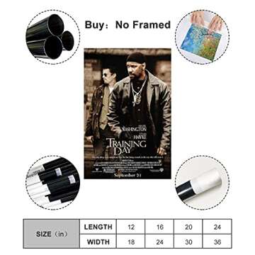 Show moreTransform your space with the captivating ASDSH Training Day Movie Posters Canvas Art. Measuring at a perfect 16x24 inches (40x60 cm), this stunning wall art piece not only serves as a decoration but also as a conversation starter. Featuring iconic imagery from the critically acclaimed film "Training Day," its modern design effortlessly enhances any family bedroom or living area, adding a cinematic flair that both movie enthusiasts and casual viewers will adore.