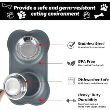 AsFrost Dog Food Bowls Set - Stainless Steel with No Spill Mat, 4 Cup