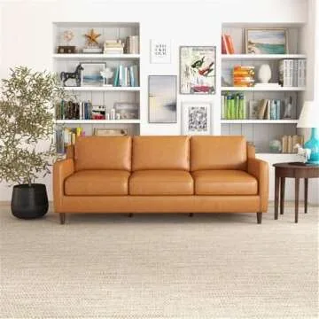 ASHCROFT Madison Mid Century Modern Furniture Genuine Leather Couches in Cognac Tan