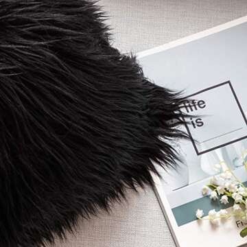 Ashler HOME DECO Pack of 2 Decorative Luxury Style Black Faux Fur Throw Pillow Case Cushion Cover 18 x 18 Inches 45 x 45 cm