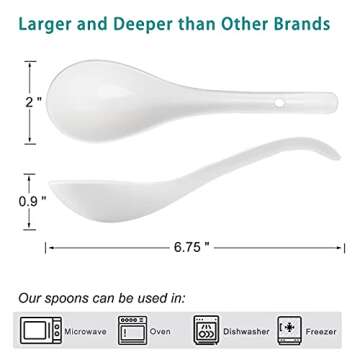 Asian Soup Spoons Ceramic, 6.75 Inch Large Chinese Soup Spoons Set, Ramen Spoons White Japanese Soup Spoon for Wonton Pho Dumpling, Big Scoop & Hook Design, Dishwasher Safe, Set of 6