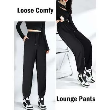 ASIMOON Sweatpants for Women Comfy Lightweight Joggers with Pockets Stretch High Waist Drawstring Jogging Pants Ladies Casual Yoga Workout Sweat Pants Black