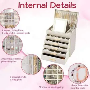 ASINGYER Large Jewelry Box Organizer - 6 Layer Jewelry Holder Organizer with Mirror for Necklace, Earrings and Bracelets Storage, Jewelry Boxes & Organizers for Women (6 layer Champagne)