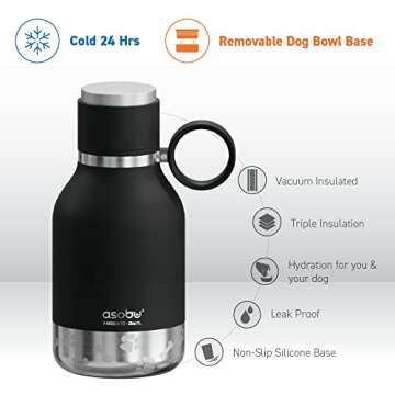 Asobu Dog Bowl Attached to Stainless Steel Insulated Travel Bottle for Human 33 Ounce (Black)