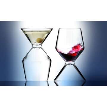Show moreIntroducing the Asobu Vino Tini Wine and Martini Glass, the ultimate dual-purpose drinking vessel crafted for those who appreciate both style and functionality. This innovative glass features a sleek 2-in-1 design that allows you to enjoy your favorite cocktails and wines all in one convenient cup. The elegant combination of a spacious 8-ounce martini bowl on top and a generous 15-ounce wine glass base makes it perfect for both casual sipping at home and elegant parties. Constructed from high-quality, 100% BPA-free materials, this glass guarantees both safety and durability, ensuring you and your guests can enjoy every sip worry-free.