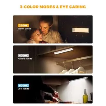 Show more If you're in search of the ideal gift that combines practicality with modern technology, look no further than this innovative LED motion sensor light. Designed by ASOKO, this advanced lighting solution offers three versatile light colors: cool white (6000K), daylight (4500K), and warm white (3000K), catering to different settings and preferences. The cool white setting delivers bright illumination, perfect for kitchens and workspaces, while the daylight mode offers soothing light that protects your eyesight—making it perfect for use in closets where color accuracy is key. Meanwhile, the warm white creates a cozy atmosphere at night, ideal for bedrooms and hallways.