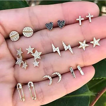Asooll 9Pairs Star Heart Moon Multiple Stud Earrings set Fashion Stud Earring Set for Women