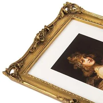 ASOWIN 8x10 Gold Retro Picture Frames with Embossed Furnishing, Vintage Photo Frame 5x7 with White Mat for Tabletop & Wall Display