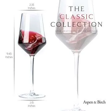 Aspen & Birch - Classic Wine Glasses Set of 4 - Red Wine Glasses or White Wine Glasses, Premium Crystal Stemware, Long Stem Wine Glasses Set, Clear, 15 oz, Hand Blown Glass Crafted by Artisans