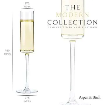 Show moreIndulge in the art of celebration with the stunning Aspen & Birch Modern Champagne Flutes Set. This exquisite set of four champagne glasses is crafted for those who appreciate fine beverages and elegant designs. Each piece showcases a tall cylindrical bowl and a long graceful stem, offering a perfect blend of sophistication and functionality. Hand-blown by skilled artisans, these flutes not only elevate the experience of drinking champagne but also serve as a beautifully designed addition to your bar or dining table. Their unique aesthetics make them a talking point during events, while their durability ensures that they are made for those special moments.