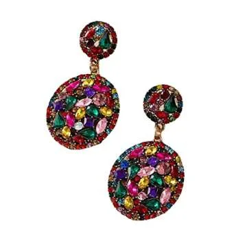 With a size of 2.4'' by 1.4'', these chic earrings strike the perfect balance between being statement pieces and remaining comfortable enough for all-day wear. Their geometric design adds a contemporary flair, making them suitable for both casual outings and formal events. Each pair is designed to sparkle, featuring a gorgeous crystal cluster that catches the light beautifully, elevating your look effortlessly.