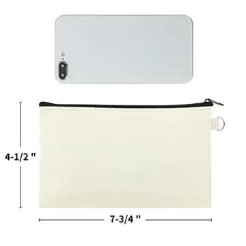 Aspire 6-Pack Canvas Makeup Bags, Blank Cotton Zipper Bags for DIY Craft, 7-3/4 x 4-1/2 Inch (Natural)