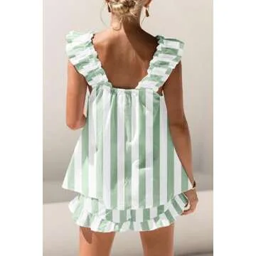 Show more Experience the ultimate in comfort and style with the ASPJNOY Women's Lounge Pajama Set. Crafted from high-quality, soft cotton fabric, this 2-piece outfit is designed to provide a luxurious feel against your skin. The lightweight and breathable material ensures you stay cool during warm summer nights, while the beautiful ruffle trim adds a touch of charm to your loungewear collection. Featuring a cute tank top with double-layer ruffle straps and an elasticated back panel, this set combines both function and fashion seamlessly.