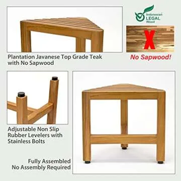 Asta Zini Solid Teak Shower/Bath/Spa Corner Foot Stool, Side Table, Fully Assembled, TB-014