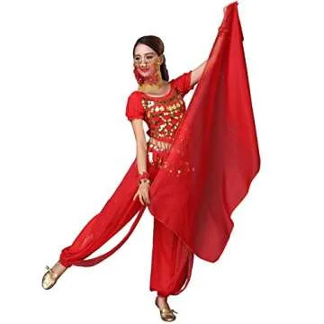 The harem pants are not only stylish but also manageable, featuring coin connections that add a mesmerizing shine while you move. The unique design of the pants is thoughtfully constructed with a sheer fabric, offering a hint of allure. If preferred, simply pair it with shorts for added confidence. The veil adds a mysterious charm, making it an ideal choice for dancers and performers looking to enhance their artistic expressions.