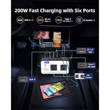 Astaican 200W Car Power Inverter, DC 12V to 110V AC Car Plug Adapter with 20W USB-C & 18W USB-A Dual AC Outlet, PD/QC Fast Car Charger for Laptop, Vehicles, Road Trip Essentials, White