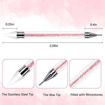 ASTONFOG 2 Pcs Wax Nail Rhinestones Picker Pencil, Dual-ended Rhinestone Gems Crystals Studs Picker Wax Pencil Pen, Crystal Beads Handle Manicure Nail Art DIY Decoration Tool (Pink White)