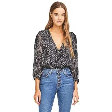 Show moreElevate your wardrobe with the ASTR the label Women's Shawna Abstract Velvet Floral Top, a stunning ensemble that encapsulates both sophistication and comfort. Made from rich, luxurious velvet, this shirt is designed for the modern woman who values style and versatility. Featuring a deep V-neckline, the top showcases an eye-catching abstract floral print that adds a touch of femininity and flair to your look. The front ties not only enhance its aesthetic appeal but also provide a customizable fit, allowing you to adjust the neckline according to your personal style. Perfect for a casual brunch or an elegant evening event, this top seamlessly transitions from day to night, ensuring you exude chic vibes on every occasion. With its premium fabric and thoughtful design, the Shawna top embodies the essence of contemporary fashion, making it a must-have addition to your wardrobe.