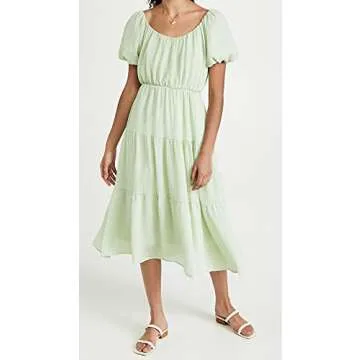 Show moreStep into timeless elegance with the ASTR Women's Smocked Tiered Maxi Dress. Designed for comfort without sacrificing style, this sage-colored beauty features stunning billowing puff sleeves that add a touch of whimsy to your wardrobe. The scoop neckline beautifully frames the face and showcases your collarbones, while the cinched waistline enhances your figure for a flattering silhouette. Crafted from a lightweight, textured fabric, this dress gracefully flows into a tiered skirt that dances with every step, making it the perfect choice for breezy spring days.