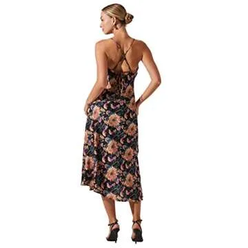 Show moreStep into elegance with the ASTR the Label Women’s Gaia Dress, designed for the fashion-forward woman who appreciates both style and comfort. This stunning black-tan floral dress features delicate spaghetti straps that gently hug your shoulders, while the seductive cowl neckline adds a touch of sophistication. Crafted with a flattering midi length, this dress gracefully swishes around your legs with every step, perfect for both day and night events. The unique tie-back feature allows for an adjustable fit, enhancing your silhouette effortlessly. Plus, the daring front slit brings a contemporary edge to your look, effortlessly combining chic and modern elements.