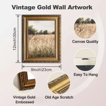 ASTRDECOR Vintage Wildflower Wall Art, Gold Framed Wall Art Farmhouse Wall Decor Wildflower Field Landscape Oil Painting, Neutral Spring Country Scenery Pictures Wall Decor, Vintage Artwork for Wall - 9"x12"
