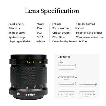 AstrHori 75mm F4 Manual Portrait Lens Medium Format Match 100 Million Pixels Mirrorless Camera & Cover 33x44 Sensor for FUJIFILM GFX Mount GFX 50SII,GFX100,GFX100 IR Ver,GFX 50S,GFX 50R,GFX 100S