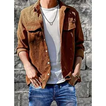 Astylish Mens Corduroy Shirt Slim Fit Button Down Long Sleeve Shirts for Men Brown XX-Large