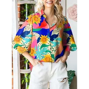 Astylish Oversized Boho Shirts for Women Spring Paisley V-Neck Lantern Long Sleeve Blouse Button Down Tops Dressy Casual Orange Small