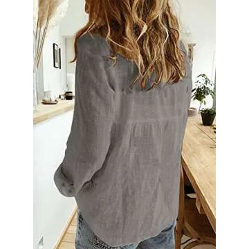 Show moreIntroducing the Astylish Women Henley Long Sleeve Tops—a perfect blend of comfort, style, and versatility. This loose-fitting blouse is designed for the modern woman who values both fashion and practicality. With its collared V-neck design and roll-up sleeves, this button-down shirt can effortlessly transition from a casual day out to a more formal evening event. Crafted from a super soft and lightweight fabric, it offers breathability that makes it ideal for layering during cooler seasons or wearing alone in the warmer months.