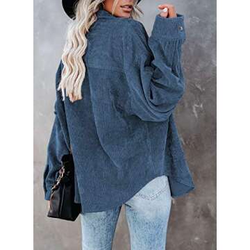 Astylish Womens V Neck Roll Up Long Sleeve Pocket Corduroy Shirts Casual Boyfriend Button Down Petite Blouses Sky Blue XL