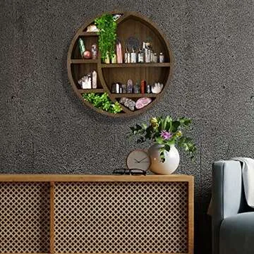 Asuare Wooden Moon Shelf for Crystals | Floating Moon Shelf | Essential Oil Display | Crystal Display Shelf | Decor for Room, Bathroom, Living Room