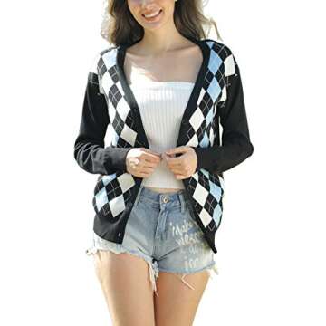 ASUOAgio Women's Argyle Sweater Long Sleeve Button Down Classic V Neck Knit Cardigan Sweaters Blue S
