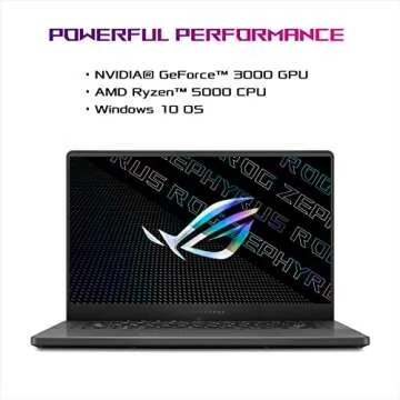Show moreUnleash your gaming potential with the ASUS ROG Zephyrus G15 Ultra Slim Gaming Laptop. Engineered for dedicated gamers and creative professionals alike, this state-of-the-art device combines high-performance components with a sleek design. Featuring the powerful NVIDIA GeForce RTX 3080, which is augmented with ROG Boost capabilities up to 1345MHz at 80W (100W with Dynamic Boost 2.0), you'll experience stunning visuals and fluid gameplay. The heart of this laptop is the impressive AMD Ryzen 9 5900HS processor, enabling speeds of up to 4.5GHz within a compact and ultraportable form factor of just 0.78 inches and 4.2 lbs. Your gaming and productivity needs are pampered with features like the immersive 15.6” 165Hz IPS-Type Quad HD display (2560 x 1440 resolution) that supports adaptive sync for tear-free visuals.