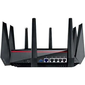 Show moreIntroducing the powerful ASUS WiFi Gaming Router (RT-AC5300), your ultimate solution for seamless gaming and streaming across your home. This tri-band router excels in delivering blazing-fast speeds of up to 5334 Mbps, ensuring that your entire household can stay connected without any lag. Whether you're gaming online, streaming 4K content, or video conferencing, the RT-AC5300 offers a robust performance that covers up to 5,000 square feet. Its unique MU-MIMO technology allows multiple devices to connect at their maximum speed at the same time, enhancing your internet experience substantially.