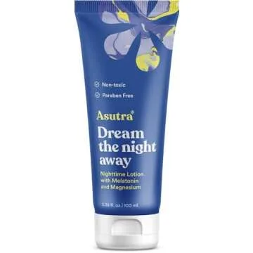 Show more The Asutra Dream the Night Away Calming Lotion is an indulgent blend of nature's finest ingredients designed to transform your bedtime routine into a soothing experience. This remarkable lotion features premium-quality magnesium sourced exclusively from the Zechstein Seabed in the Netherlands, recognized for its unparalleled purity. Combined with melatonin and a floral hint of lemongrass, this lotion works harmoniously to calm your body and mind, allowing you to drift off to sleep effortlessly.