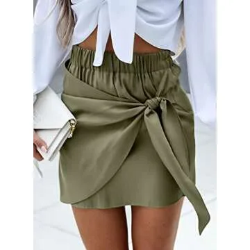 Asvivid Satin Skirts for Women Bodycon Side Tie Knot Elastic High Wasit Elegant Mini Short Skirt Green S