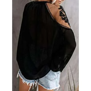 Show moreIntroducing the Asvivid Sexy V Neck Crochet Black Lace Tops for Women, where elegance meets casual chic! Designed for the modern woman, this blouse beautifully marries a sexy v-neckline with playful puff sleeves to create a light, flowy silhouette that's perfect for any occasion. Crafted from a high-quality, durable lace fabric, this top features delicate crochet detailing that adds a touch of allure and sophistication to your wardrobe. Whether you wear it for work, a date, or an evening out, this blouse is designed to enhance your beauty while providing comfort and style.