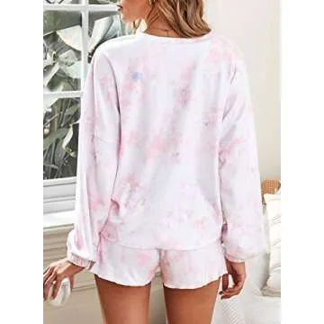 Asvivid Soft Tie Dye Pajamas for Women 2 Piece Frill Cute Pajamas Set Tops and Shorts Fleece Ladies PJS Night Lounge Wear S Pink