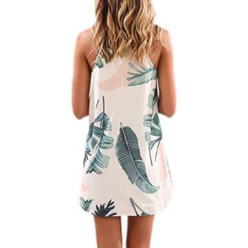 Asvivid Womens Halter Floral Print Sleeveless Beach Mini Short Dress Medium Leaf