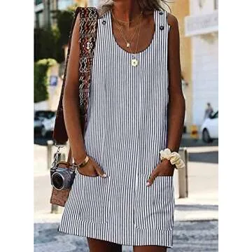 Asvivid Women's Striped Sundress - Casual Summer Mini Dress with Pockets