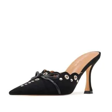 ATBELL Suede Bow Tie Mules with Studs - Chic Heeled Pumps