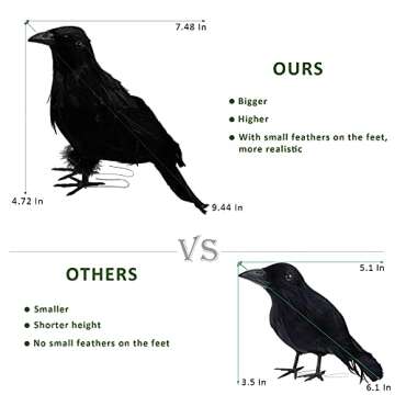 Why You Will Love This Product:These enchanting crows aren't just decorations; they are conversation starters! With their stunning realism and adaptable setup options, they truly embody the spirit of Halloween. Imagine the fun as they add suspense to your haunted house or how easily they blend into your Thanksgiving decor. They will sparks joy, fear, and fun as guests engage and snap pictures with them—making your Halloween gathering truly unforgettable!