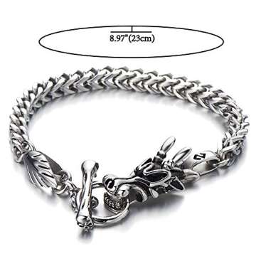 ATDMEI Dragon Bracelet Stainless Steel for Men Women Biker Curb Chain Toggle Clasp Gothic Style Jewelry
