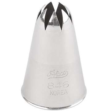 Show moreTransform your dessert creations into stunning works of art with the Ateco #846 Closed Star Pastry Tip. Designed with precision in mind, this professional-grade pastry tube features a 1/2" opening diameter that is perfect for crafting exquisitely detailed icing patterns. Made from durable, rust-resistant stainless steel, this pastry tip ensures longevity and reliable performance, allowing bakers of all skill levels to achieve beautifully decorated cakes, cupcakes, cookies, and even intricate designs in pastries. Whether you want to create classic rosettes, elegant fleur-de-lis, or delicate star shapes, the Ateco #846 makes the task effortless and enjoyable.