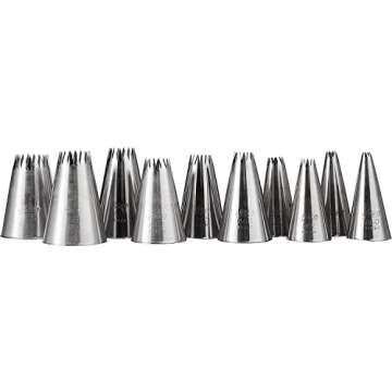 The versatility of the French star tips allows you to create stunning decorations on cakes, pastries, and more. Whether you're looking to pipe intricate designs or simply frost cupcakes with a professional touch, this set has you covered. Reviewers praise the sharpness and sturdiness of the tips, which enable you to pipe beautifully defined patterns while cutting down on time and effort significantly.