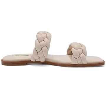 Athlefit Women's Braided Flat Sandals Square Open Toe Slip On Slides Woven Sandals Beige Size 8