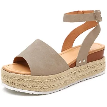 Show moreIntroducing the Athlefit Women's Platform Sandals - the ultimate espadrille wedge ankle strap sandals designed for style and comfort this summer. These gorgeous sandals feature a meticulously crafted studded open toe design that not only captivates with its chic aesthetic but also supports your every step. Made for the modern woman who values elegance in casual outings, these sandals effortlessly blend practicality with fashion-forward details. The braided jute platform not only adds height but elevates your look while ensuring you maintain optimal comfort, making them an essential piece for your summer adventures.