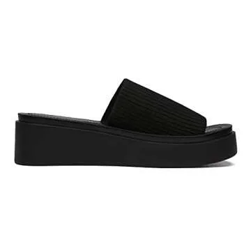 Athlefit Women's Slip On Platform Sandals Comfortable Open Toe Flatform Chunky Black Sandals Size 6.5