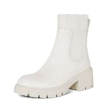 Athlefit Women's Chic White Chelsea Boots | Stylish Fall Platform Ankle Boots
