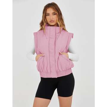 Athlisan Womens Cropped Puffer Vest Stand Collar Sleeveless Padded Gilet Vest with Pockets(Pink-XS)